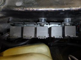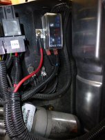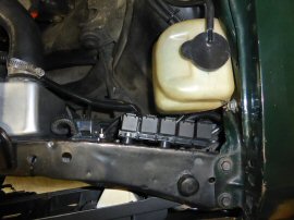 I used the same distribution point to draw the power I needed for Relay #2 & #3 to power the Headlights. Relay #1 pulls power from the fuse block on the IGNITION tab. I ran into an issue early after installation when washing the car at the local carwash. I found when I was washing the car, water was running in from the hood/fender lip, and there was the possbility of water traveling along the rad cradle and could possibly expose the relays/relay blocks to moisture causing a short. To try and correct this problem, I installed a couple of small spacers between the relays and Radiator Cradle wall. Also ensuring some space between the end of the fender/fender lip and relays below, will help avoid getting water on the relays.