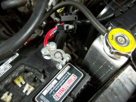 I installed a '4 Port Distribution Fuse Block' back when I first installed an Electric Fan. I did this, because I did NOT want to run multiple wires for power along the front of the car for my accessories. I installed a 4 port distribution port next to the radiator which will supply the power from the battery. This way I don't have to run multiple wires from the battery for all the accessories I've been wiring up. I am using a 10 gauge (10AWG) RED wire to bring power to the distribution port. Pulling power from the battery to power up the headlights is suppose to result in a brighter light, thus why we are installing additional relays for the LOW & HIGH beam.