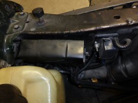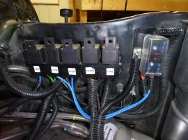 Further efforts to making sure all the relays stay dry, I made up a quick cover to fit over top of with an old license plate. Cut, trimmed & bend it accordingly and it slides over to make sure water does NOT come into contact with the relays. ![]() |