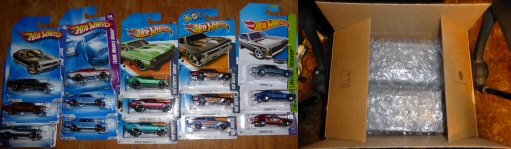 Within my Hot Wheels collections, I have alot of Novas. ALOT!. I pulled out one of each of the Hot Wheels 68 Nova since they debut in 2003, packaged them up and sent them to Doug as a surprise. With some help from his wife, I obtained an address and sent off a box of Nova HotWheels.