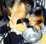 Seeing how I have 'Doggy-Dish' hubcaps on my nova, we simply just pulled off a cap, cleaned it up and Cleo now had her own 'doggy-dish' for water. |